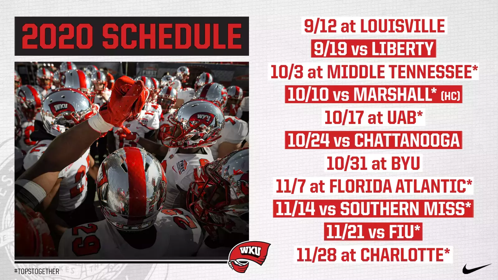 Source : charlotte49ers.comWKU Finalizes 2020 Football Schedule Western Kentucky University